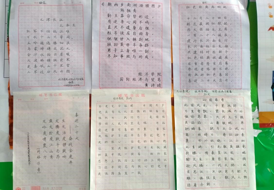为弘扬中华传统文化,加深对书法的了解和认识,3月1日晚上七点,米兰milan官方网站菁华国学社于义丰楼举办了以“我心向党喜迎二十大”为主题的书法活动。米兰milan官方网站全体大一学子参加,优秀作品于义丰楼一楼大厅展示。