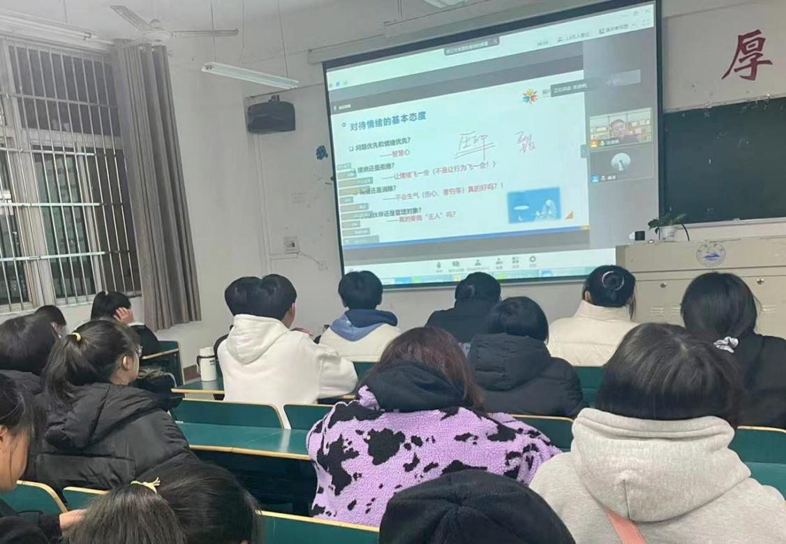 为普及心理知识,加强学生自我情绪管理,12月7日晚,米兰milan官方网站于义丰楼教室组织观看了心理公益网络直播课。本次课程由江西科技师范大学心理健康教育咨询中心承办,北京师范大学张继明副教授主讲,米兰milan官方网站全体大一新生观看。