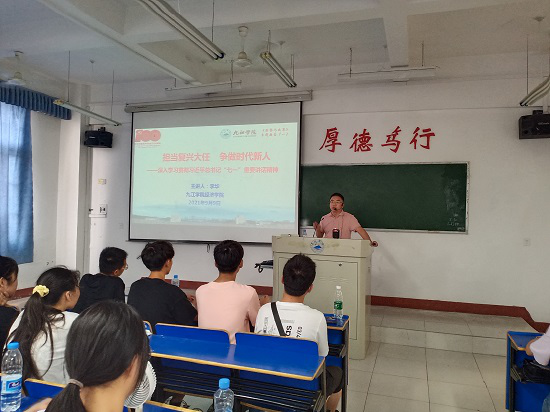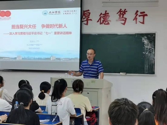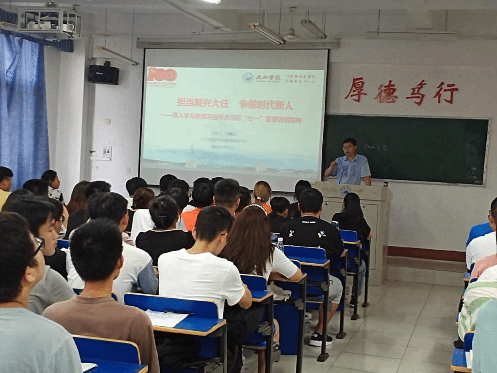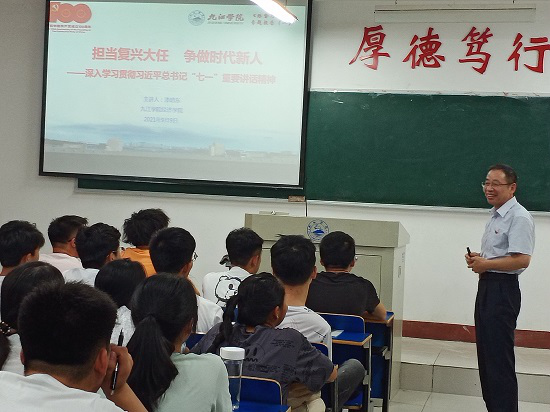 9月9日,在2021级新生刚刚报到入学之际,学院院长项益才、党委书记漆晗东、副书记刘羲之、副院长李华分别走上讲台,围绕学习贯彻习近平总书记“七一”重要讲话精神、树立远大理想等内容,给大一新生们讲授一堂生动的形势与政策思政课。