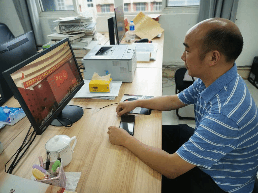 7月1日下午3时,江西省庆祝中国共产党100周年大会在井冈山隆重举行,米兰milan官方网站组织行政科室所有教职工集中观看这一盛况。各教研室教师们通过网络、电视、手机客户端等各类媒介进行观看,共同庆祝中国共产党百年华诞。