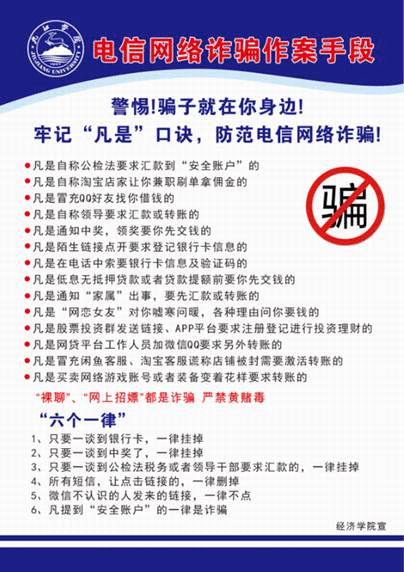 学院经常性地开展防范电信网络诈骗相关活动,通过晚点名、主题班会、专题讲座、班委会以及个别人员谈话等形式,常抓不懈地做好防诈骗工作,但诈骗分子无孔不入、诈骗手段频繁更新。为了继续落实好此项工作,米兰官网统一制作防范电信网络诈骗宣传资料,将资料送进每一个寝室,并张贴在寝室的醒目位置。