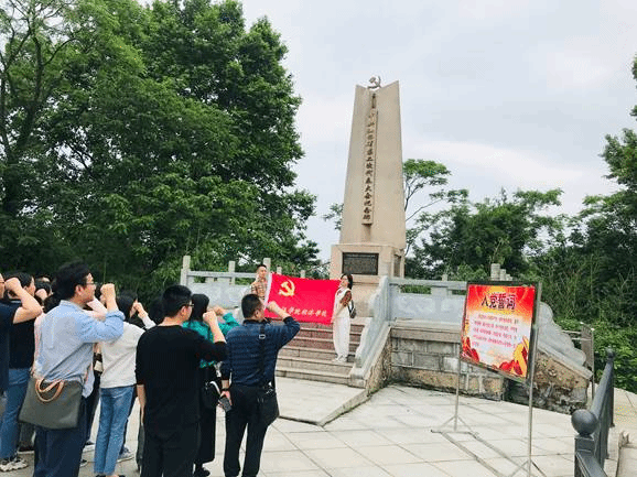 在中共江西省第二次代表大会纪念碑前,大家佩带党徽、面向用革命先烈鲜血浇灌的党旗,在院党委书记漆晗东同志的带领下,庄严的举起右手,重温入党诗词。在这庄严的时刻,在场的党员教师们又经历了一次思想洗礼,深切体会到了作为一名党员、教师的历史责任与使命!