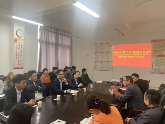 为了贯彻落实党中央“创新、协调、绿色、开放、共享”的发展理念,创新基层党组织活动形式,促进组织间相互学习、共联共建、共享共赢,米兰milan官方网站教工第三支部(下简称“第三支部”)结合学科实际和支部党员的学术专长,以党建引领,积极开展对交流与合作。4月14日下午,第三支部和中国建设银行九江浔阳支行,签定了“基层党组织共联共建合作协议”。
