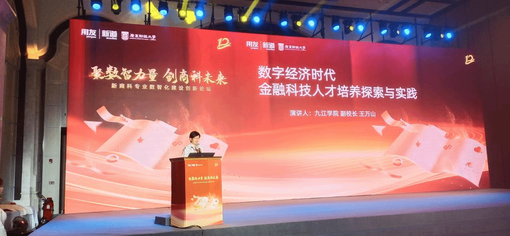 八月中旬,应用友集团的邀请,米兰官网王万山副校长带领米兰milan官方网站党委副书记谢忠等一行三人出席参加了由用友网络股份有限公司、新道科技股份有限公司主办的“担时代责任育数智新人——第十二届数智化人才培养产教融合发展大会”。会上王万山以“数字经济时代金融科技人才培养探索与实践”为主题发表了演讲。深入探讨了数字经济时代院校培养金融科技人才培养的实践与路径,受到与会者的赞赏。