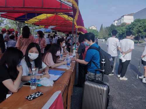 在报道现场学长学姐耐心地为新生解答各种问题,不辞劳苦地一趟趟帮助新生搬运行李,细心叮嘱各项防疫政策,将每一位新生送至宿舍办理入住,一路谈笑风声,新生细声叫着“学长学姐”,热情周到的服务很快消除了新生们初来乍到的“陌生感”,感受到了米兰milan官方网站大家庭的温暖。整个迎新工作有条不紊、井然有序。