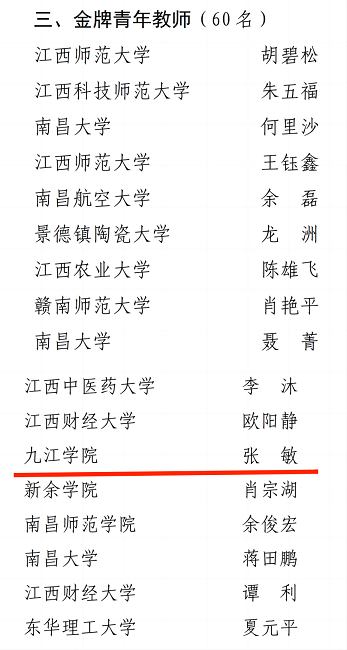 据悉,为贯彻落实全国、全省教育大会和全国、全省普通高校本科教育工作会议精神,全面落实立德树人根本任务,牢固树立教学中心地位,激发广大教师以生为本,切实承担起教书育人使命,省教育厅与省教育工会联合开展了第二届江西省普通高校金牌教师(教学名师)推选活动,第二届共评出省级金牌青年教师60名。