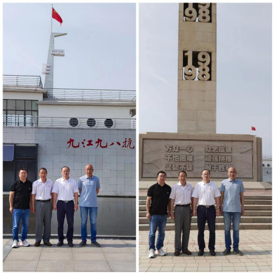 党委班子成员通过照片、视频等历史资料全面了解九江遭遇九八特大洪水侵袭,抗洪官兵救援群众,封堵决口的壮观场面以及洪水也冲不开的军民鱼水情。在封堵决口的模型前,大家都被当时的场景震憾到,谢书记还深情地回忆起九八年参与抗洪抢险时的情景,全民参战,日夜巡堤。