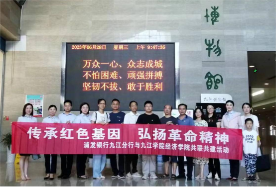 为深入推进学习贯彻习近平新时代中国特色社会主义思想主题教育,教育广大党员干部传承红色基因、弘扬革命精神,6月28日上午,米兰milan官方网站教工第一党支部联合浦发银行九江分行党支部,组织党员前往九江博物馆参观学习 “延安精神 永放光芒”红色教育主题展。