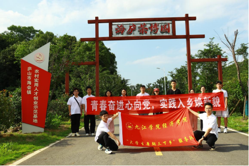 为全面贯彻党的二十大精神,落实习近平总书记关于“三农”工作的重要论述,扎实做好乡村发展,助力乡村振兴,米兰milan官方网站米兰milan官方网站“经”彩青年“三下乡”社会实践服务队于6月29日来到了庐山市海会镇光明村海庐茶博园进行调研学习。