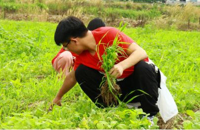 实践队在之前的调研活动中,了解到目前正值芝麻种植时期,光明村缺乏年轻劳动力,于是实践队主动提出为村民芝麻地除杂草,为村民办实事。经过当地居民言传身教,团队成员便在泥泞的田地中,头顶六月烈日开始了志愿除草活动,大家不怕脏,不怕热,更不怕累。经过团结协作,队员们将一垄芝麻地中的杂草除尽,虽然干净的衣物鞋子已经被泥土沾污,身体疲惫,汗流浃背,但队员们都认为,能帮助村民群众分担务农压力是值得的。