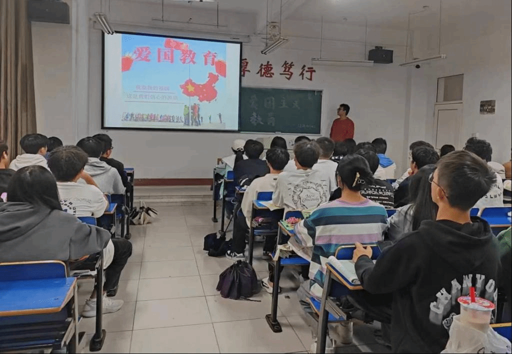首先,宣讲人播放了我国自改革开放以来在多个领域无数次飞跃的视频,视频中展现了中国在时代发展的大潮中不断转型变革,一跃成为世界第二大经济体,谱写了国家和民族发展的宏伟诗篇,激发了同学们民族自豪感。接着,宣讲人详细介绍了中国人民从抗日战争以来的一系列斗争,讲述战士们前仆后继,舍生取义的英雄事迹,呼吁同学们勿忘国耻,振兴中华。同学们在这浓厚爱国主义氛围中,用自己最响亮的声音喊出对祖国的热爱与祝福。