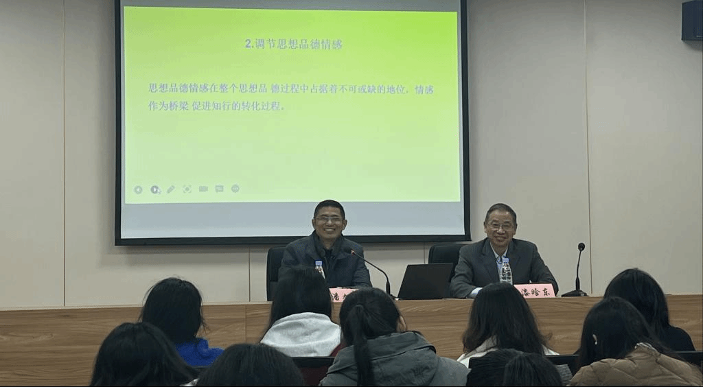 潘旭华教授以“大学生思想品德意志的培养”为主题,对思想品德意志的概念和作用进行详细讲解,结合当代大学生的特点和实际案例,分析了大学生思想品德意志的主要特征和存在的问题,并对如何提高大学生思想品德的自我教育能力提出了务实的建议:一是要学思结合,调控思想品德意志的发展;二是要自主探索,改善思想品德意志的方法;三是要自觉参与,推进思想品德意志的实践。