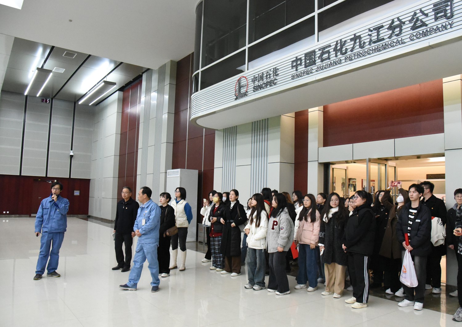 首先,第一站来到了中国石化九江分公司,先后参观了石化企业生产管控中心控制大厅和检验计量中心实验室,通过现场仔细聆听讲解员的介绍,观看习近平总书记来考察时的相关讲话视频以及同石化工作人员的互动交流等,回顾总书记重要指示要求,现场感悟总书记的殷殷嘱托。