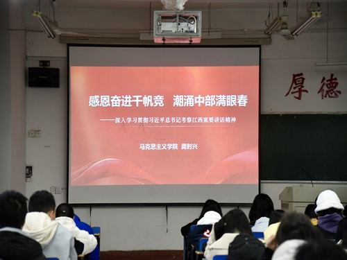 为了学习贯彻习近平总书记考察江西重要讲话精神,12月13日,米兰milan官方网站在义丰楼举办习近平总书记考察江西重要讲话精神主题宣讲活动,由龚时兴老师主持宣讲。