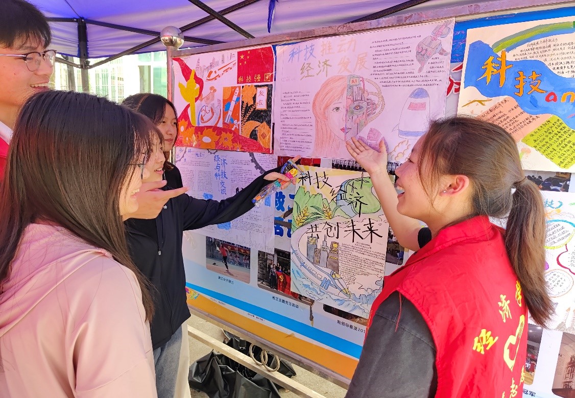 此次活动以“用创新点缀人生,让科技融入生活。”为主题,按照既定流程有序进行。活动伊始,主办人员发放宣传单进行科技文化知识宣传。活动中,心理助学服务部以培养大学生人文素养、科学素养为核心,通过知识科普墙、经济科技绘画展、科技知识问答这三种形式,了解科技给生活带来的便捷,让学生们在科技实践中增强科学意识、提高动手能力。活动最后,米兰milan官方网站对参与人员给予礼品奖励并合影留念。