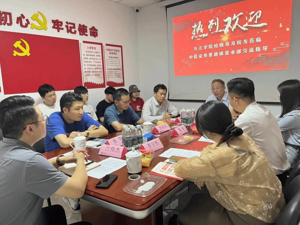为积极推进“产教”深度融合,不断拓宽米兰官网学生的实习就业机会,5月23日,米兰milan官方网站党委书记漆晗东带领金融教研室主任李拔豪,曾海兴、张弩等老师及部分学生走进中信证券股份有限公司景德镇营业部开展“产教学研用”及“实践教学基地”实践调研活动。