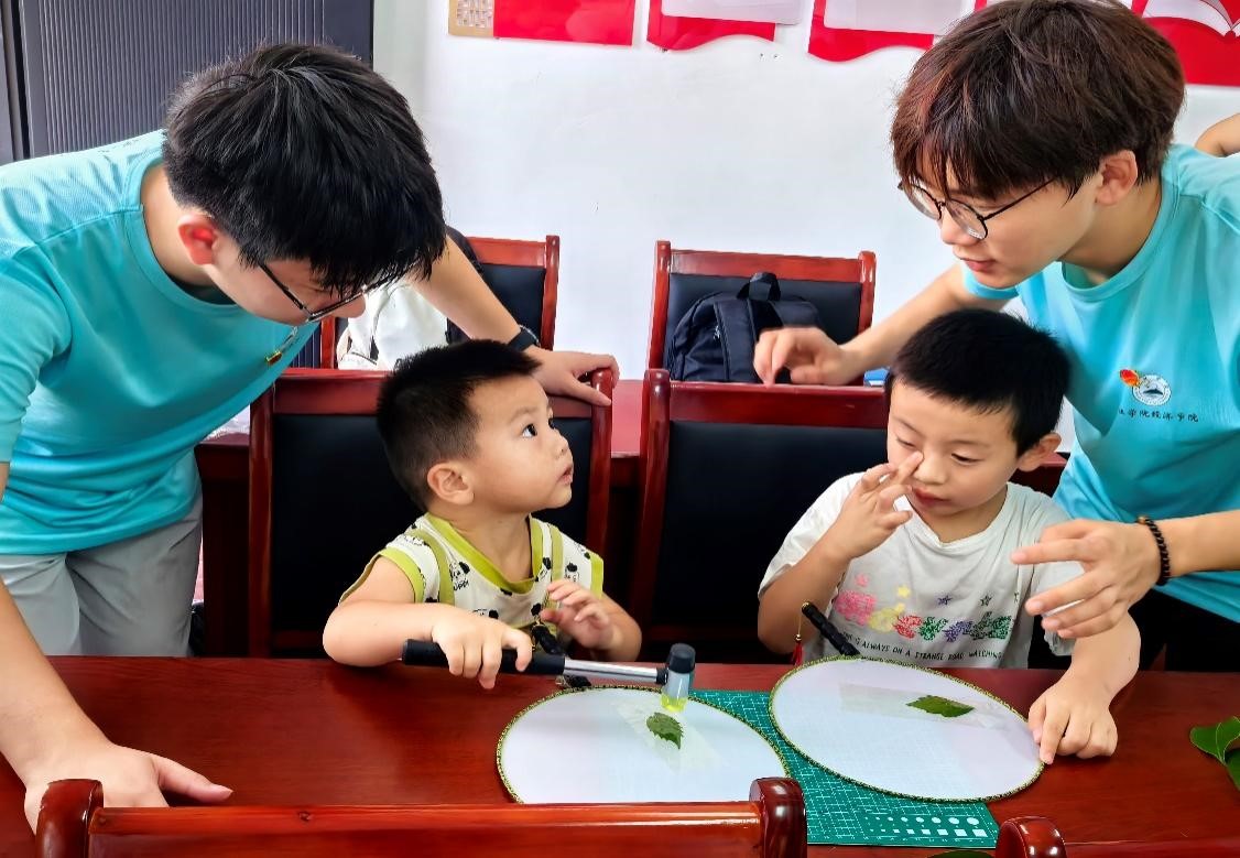在7月2日上午,米兰milan官方网站“精益求精”三下乡社会实践服务队成员走进泽泉乡,共同向经验丰富的非遗传承人虚心求教,深入学习了捶草印花的历史渊源、工艺流程及文化意义,集体体验了捶草印花的过程。下午,实践服务队走进泽泉乡朝阳社区,将这份独特的文化体验传授给了当地的留守儿童。通过互动教学与亲手操作,孩子们不仅学会了捶草印花的基本技巧,更在心中种下了传承与发扬传统文化的种子。
