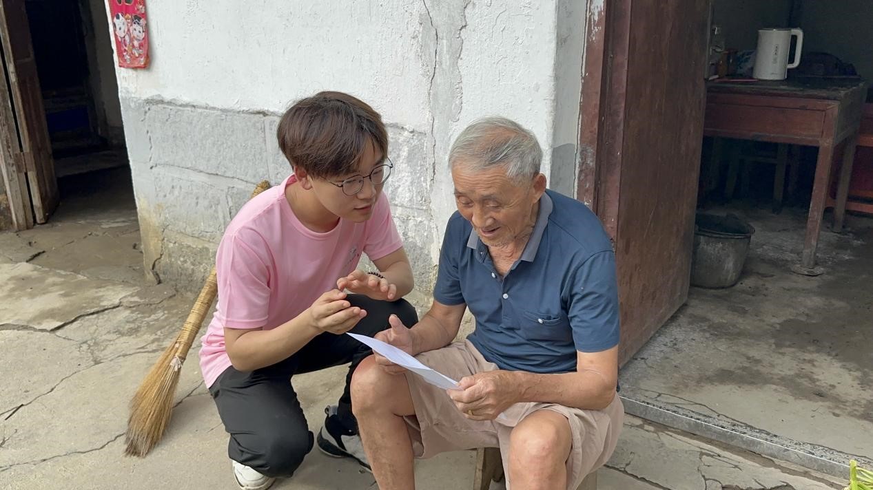 7月5号,精益求“经”社会实践服务队拜访了泽泉乡关帝庙村老党员胡茂桂同志。历经沧桑的胡茂桂同志,以高度的政治觉悟为指引,深情追溯历史的经纬,梳理出一条清晰的时间线索,以此深化对党的理想、价值与情感的内在认知。他是一位1971年入党,已经光荣在党50多年的老党员。自加入中国共产党以来,他以质朴无华的人格魅力和对党无限忠诚的信仰,为关帝庙村的繁荣发展贡献了自己的智慧和力量。“以一灯传诸灯,终至万灯皆明。”此次走访活动,不仅让志愿服务队成员深刻体会到了老一辈党员的崇高精神,也进一步激发了他们作为新时代青年的责任感和使命感。