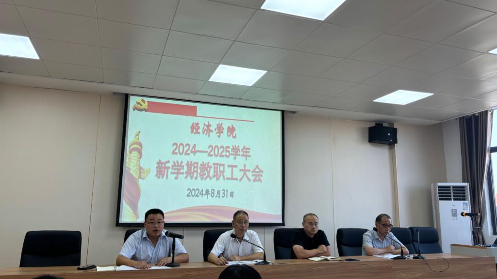 8月31日,米兰milan官方网站在义丰楼602会议室召开新学期全体教职工大会,总结学院假期工作,安排部署新学期重点工作。学院领导班子成员、学院全体教职工参加会议,会议由学院副院长雷祺主持。