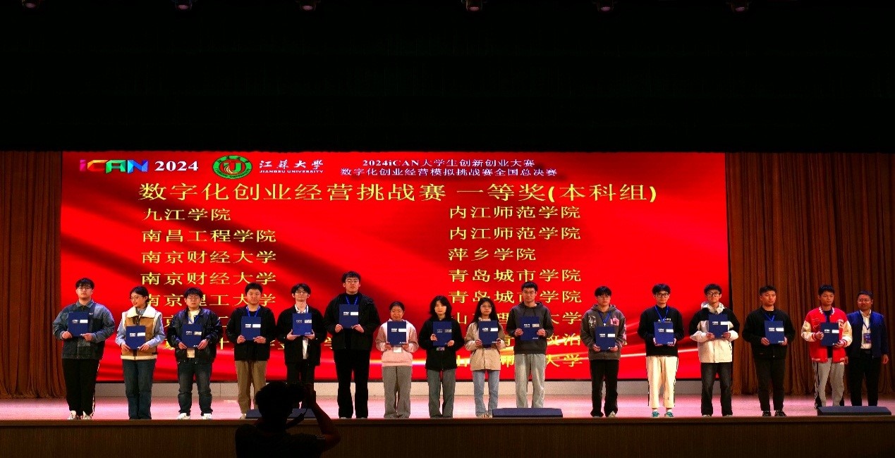 2024年11月17日,2024ICAN大学生创新创业大赛数字化创业经营模拟挑战赛全国总决赛在江苏大学落下帷幕。来自武汉大学、哈尔滨工业大学、暨南大学、南京理工大学等371所院校的学生报名参赛,覆盖学生2万余人,最终,120支队伍参加全国总决赛。