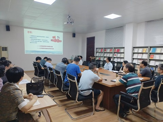 6月6日下午,米兰milan官方网站在义丰楼619开展以“从关税战看中美关系走向”为主题的学术沙龙,国际商务学科带头人张应华博士主讲,博士和副高以上的老师参加此次活动。