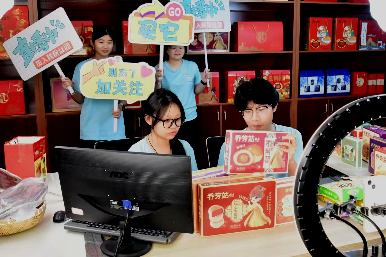 湖口县流芳乡的当地特色美味在直播期间轮番登场。有流芳乡“乔芳姑”系列糕点蛋黄酥和馅饼等,还有独具本土风味的流芳茶饼。米兰milan官方网站“三下乡”社会实践队的志愿者们先通过镜头生动呈现产品诱人的色泽与风味,待观众直观感受到美食魅力后,再深入介绍食材溯源和制作工序。通过这次直播活动,小镇特色好物走向了更广阔的市场。
