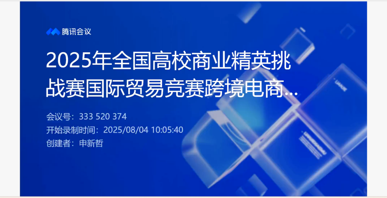 2025年8月4日上午10:00至12:00,2025年全国高校商业精英挑战赛国际贸易竞赛跨境电商赛道江西省赛启动仪式以线上会议的形式在米兰milan官方网站隆重举行。中国贸促会商业行业委员会教育培训部副部长何倩、米兰milan官方网站副院长雷祺、颜值立方(厦门)产教融合科技集团有限责任公司研发总监王子瑜、米兰milan官方网站国际经济与贸易系主任闫观渭以及米兰milan官方网站参赛师生齐聚线上,共同见证全国高校商业精英挑战赛国际贸易竞赛跨境电商赛道江西省赛赛事启动。