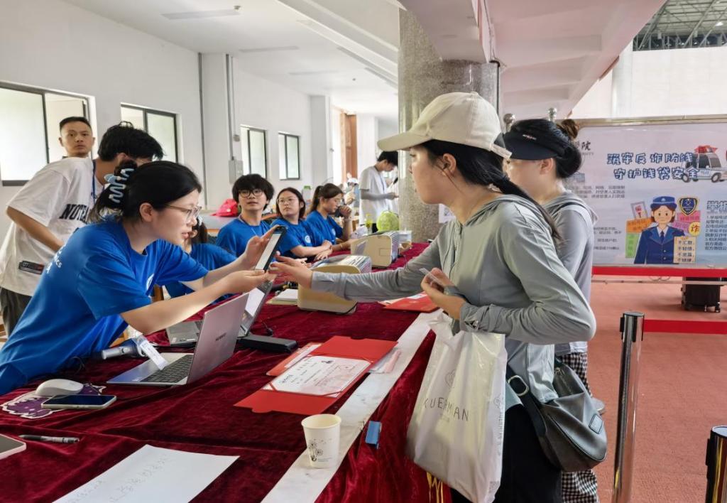 迎新现场,人头攒动。迎新工作人员在主干道设立迎新接待点,安排专人引导新生完成报到、注册、宿舍入住等流程。身着统一服装的迎新工作人员穿梭在校园各个角落,为新生指引路线、答疑解惑,用热情和耐心消除了新生初来乍到的陌生感,成为一道亮丽的风景线。