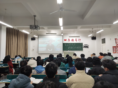 为学习贯彻党的二十大精神,迎接我国第九个国家宪法日,促进同学们对宪法的了解,大力弘扬宪法精神,12月4日晚,米兰milan官方网站于义丰楼组织开展了国家宪法日学习活动。本次活动由各班团支书主讲,米兰milan官方网站全体同学参加。
