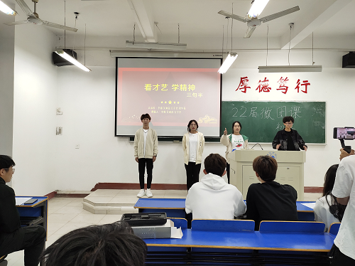 为响应党的二十大精神号召,传承红色基因,提升基层团组织的凝聚力,10月24日晚,米兰milan官方网站于义丰楼502举行了“微团课”初赛。本次比赛由米兰milan官方网站组织部组织,李硕、李鹏晖、徐可瑶、顾喜担任评委,各班团支书和班级代表参加。